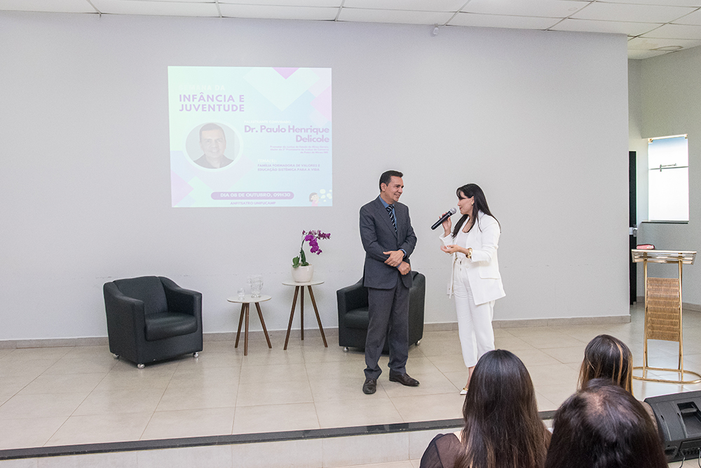 A abertura oficial da Semana da Infância e Juventude, nesta quarta-feira (8/10), contou com a palestra “Família Formadora de Valores e Educação Sistêmica para a Vida”, proferida pelo promotor de Justiça titular da 3ª Promotoria de Justiça da Comarca de Patos de Minas, Paulo Henrique Delicole.