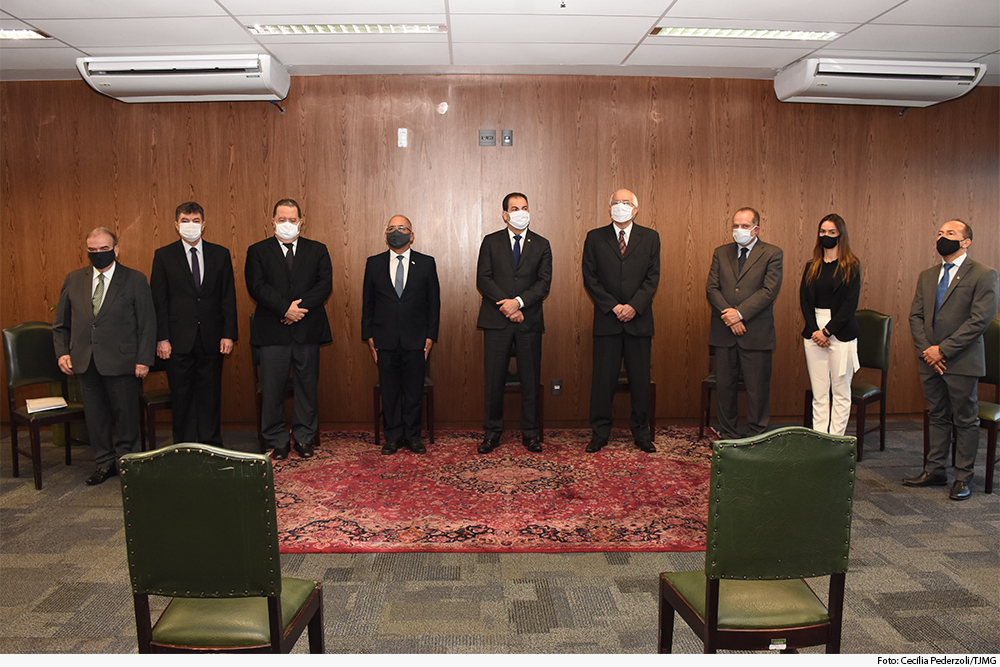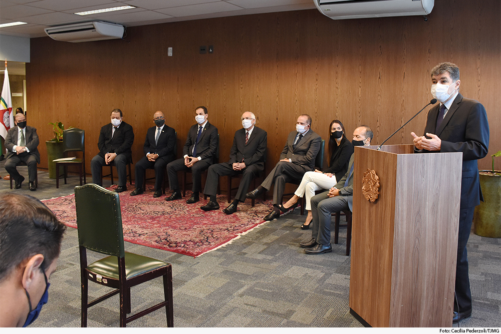 Além do presidente, participaram da cerimônia de assinatura da portaria o 1º vice-presidente do TJMG, desembargador José Flávio de Almeida; o 2º vice-presidente, Tiago Pinto; o 3º vice-presidente, Newton Teixeira Carvalho; o procurador-geral de justiça de Minas Gerais, Antônio Sérgio Tonet; o secretário de Estado de Justiça e Segurança Pública de Minas Gerais, general Mário Lúcio Alves de Araújo; a sub-defensora pública-geral, Marina Lage Pessoa da Costa; o coordenador-geral do programa Novos Rumos, desembargador Antônio Armando dos Anjos; a superintendente da Coordenadoria da Infância e da Juventude (Coinj), desembargadora Valéria Rodrigues Queiroz; o diretor executivo da Fraternidade Brasileira de Assistência aos Condenados (FBAC), Valdeci Antônio Ferreira; e o juiz Gustavo Moreira, titular da 1ª Vara Criminal e de Execuções Penais da Comarca de Frutal.