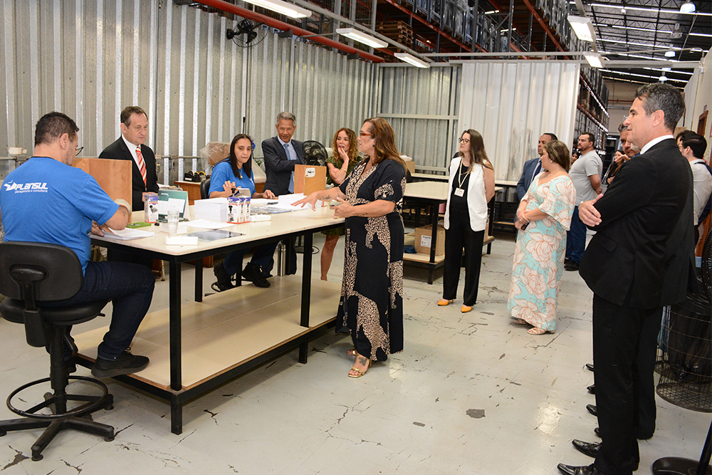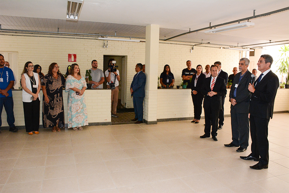 “Eu fico muito feliz de ser o primeiro presidente a vir aqui no nosso setor de material e patrimônio”, comentou o presidente Corrêa Junior.