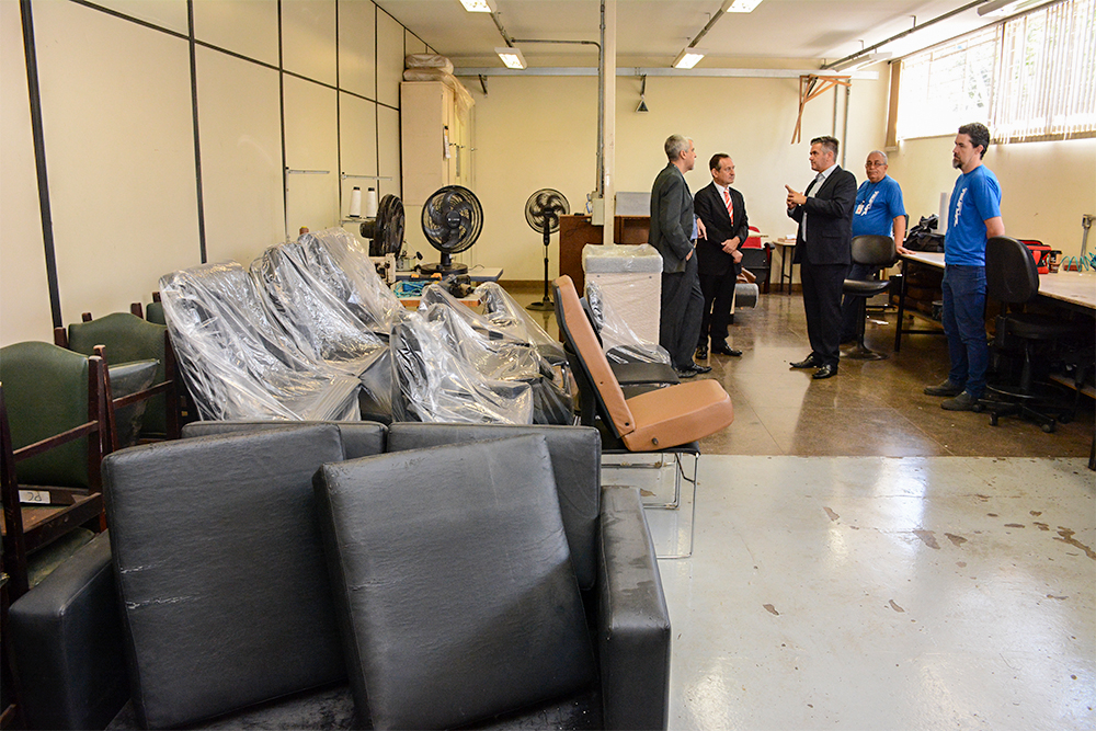 No local, o presidente conheceu o trabalho realizado e a estrutura, que conta com ambientes para armazenamento de materiais de consumo, bens permanentes móveis e bens patrimoniais, assim como espaços direcionados à restauração de mobiliário do Judiciário estadual, incluindo oficina, marcenaria e capotaria.