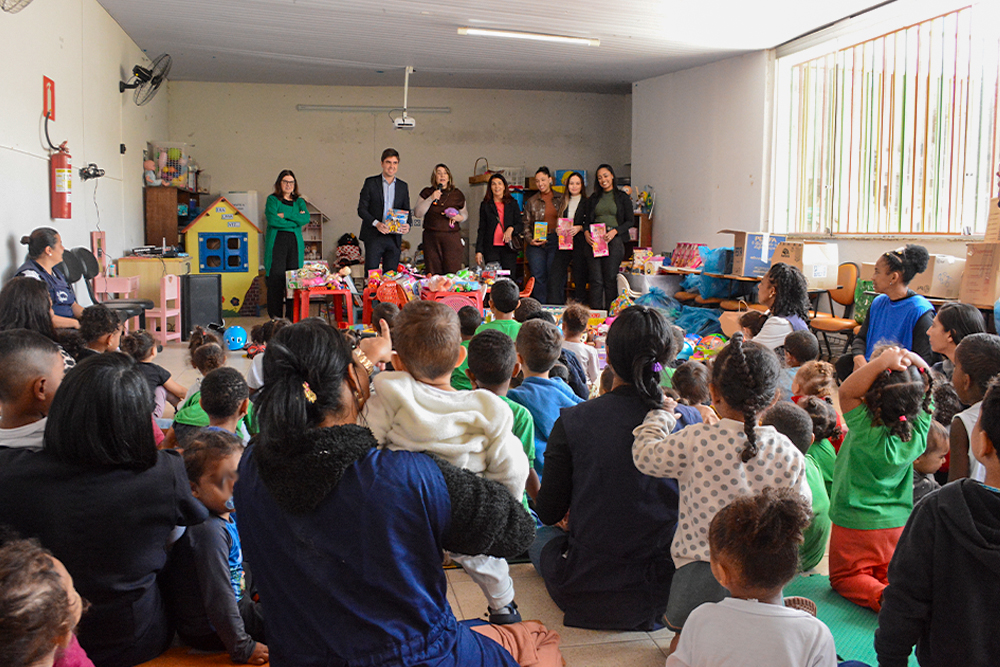 Um grupo de 80 crianças, de 4 meses e 3 anos, recebeu a visita de membros do Núcleo do Voluntariado (NV) do Tribunal de Justiça de Minas Gerais (TJMG), que levaram mais de mil brinquedos arrecadados durante o Mês das Crianças.