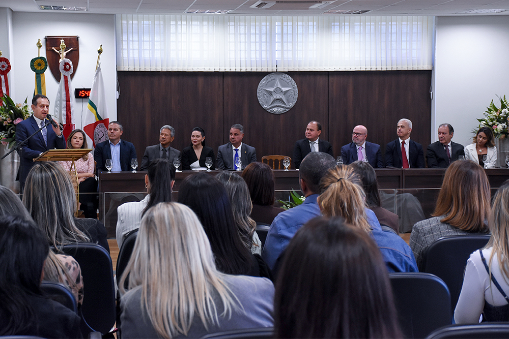 Durante a solenidade, o presidente do TJMG, desembargador Corrêa Junior, e o presidente do TRF6, desembargador federal Vallisney Oliveira, foram homenageados pela juíza diretora do foro de Monte Carmelo, Tainá Silveira Cruvinel.