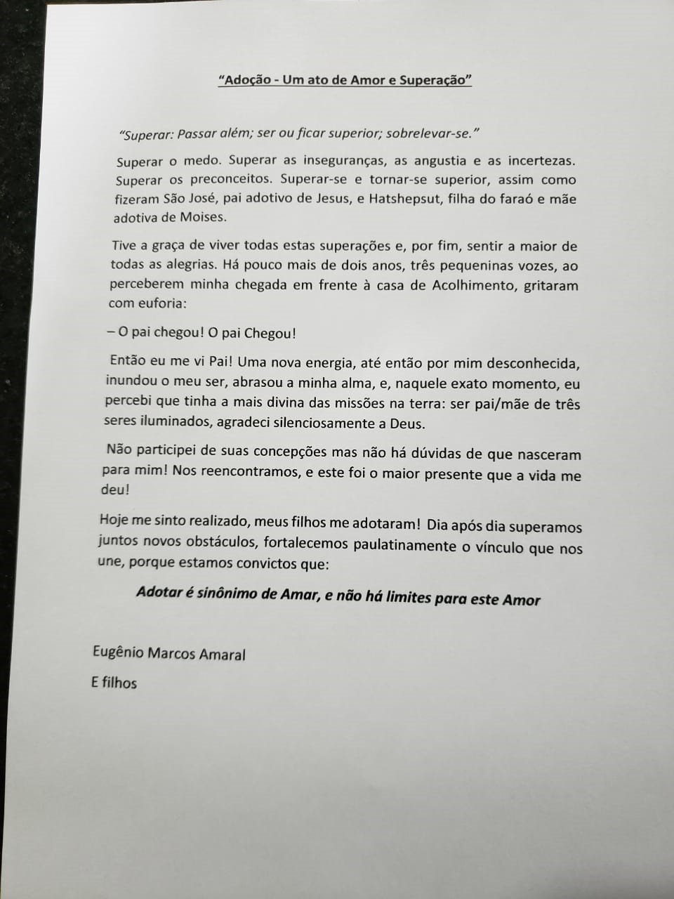 Confira aqui o relato de um pai que adotou três crianças e o de uma mãe que adotou uma menina de 9 anos. Leia também a cartinha de uma menina de 10 anos que hoje está com 22.